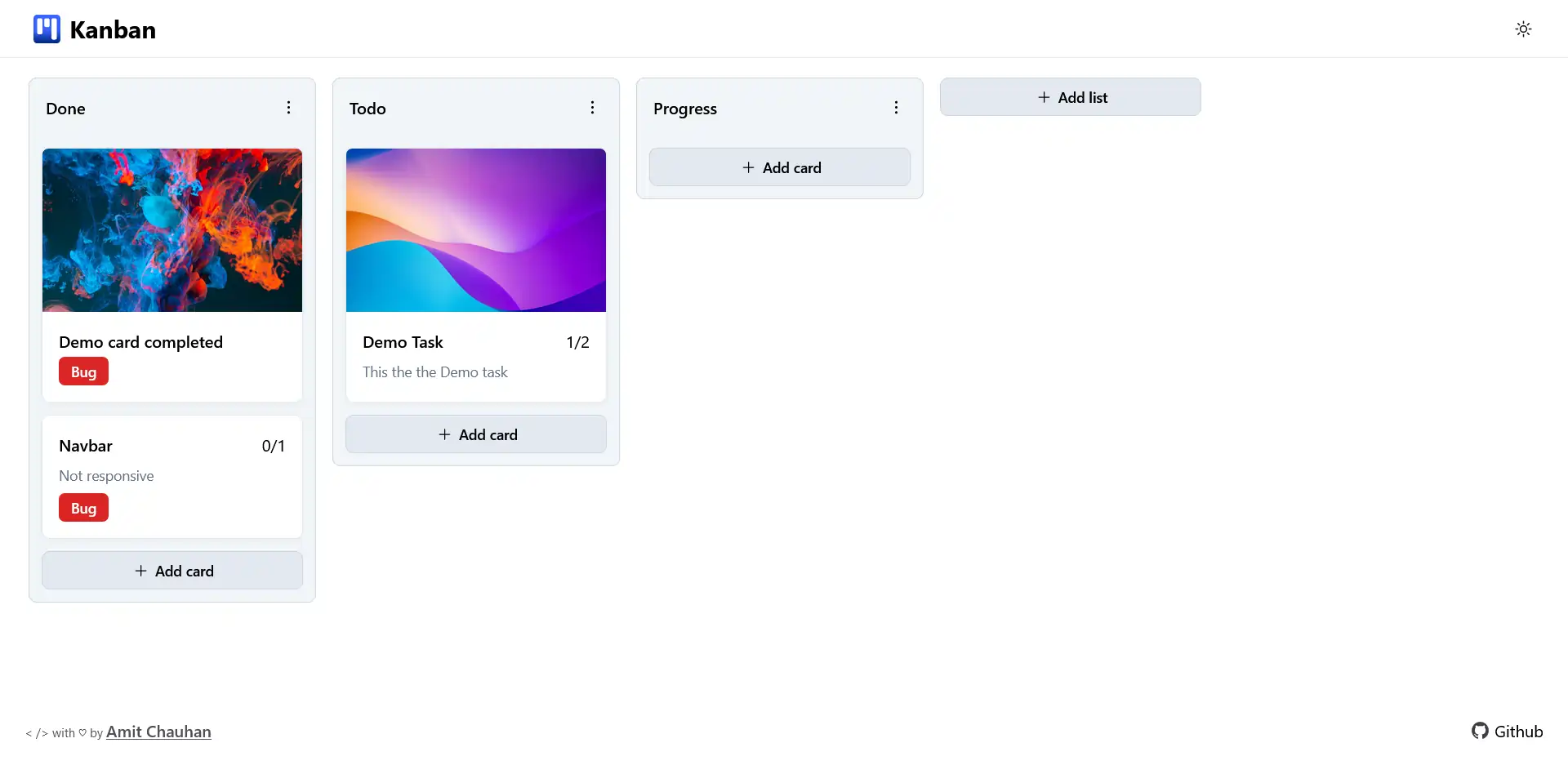 Keep track of projects and tasks in different categories. Drag and drop card from tables. Assign user and priority to task and many more features. This app is made using Reactjs, Typescript, Tailwindcss and React-beautiful-dnd library.